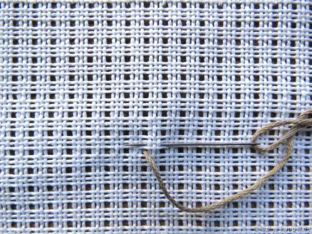 Pull the needle through and the thread to the left. The working thread should be taut, but the fabric threads should not be pulled together.