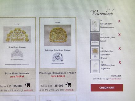 Um diese Bestellung zu beheben, wurde das System umgestellt. Es ist jetzt für alle Kunden spielend leicht zu durchlaufen: Man wählt das gewünschte Produkt und füllt damit den Warenkorb. Durch Drücken des „Check-Out“ Knopfes gelangt man zur nächsten Seite.